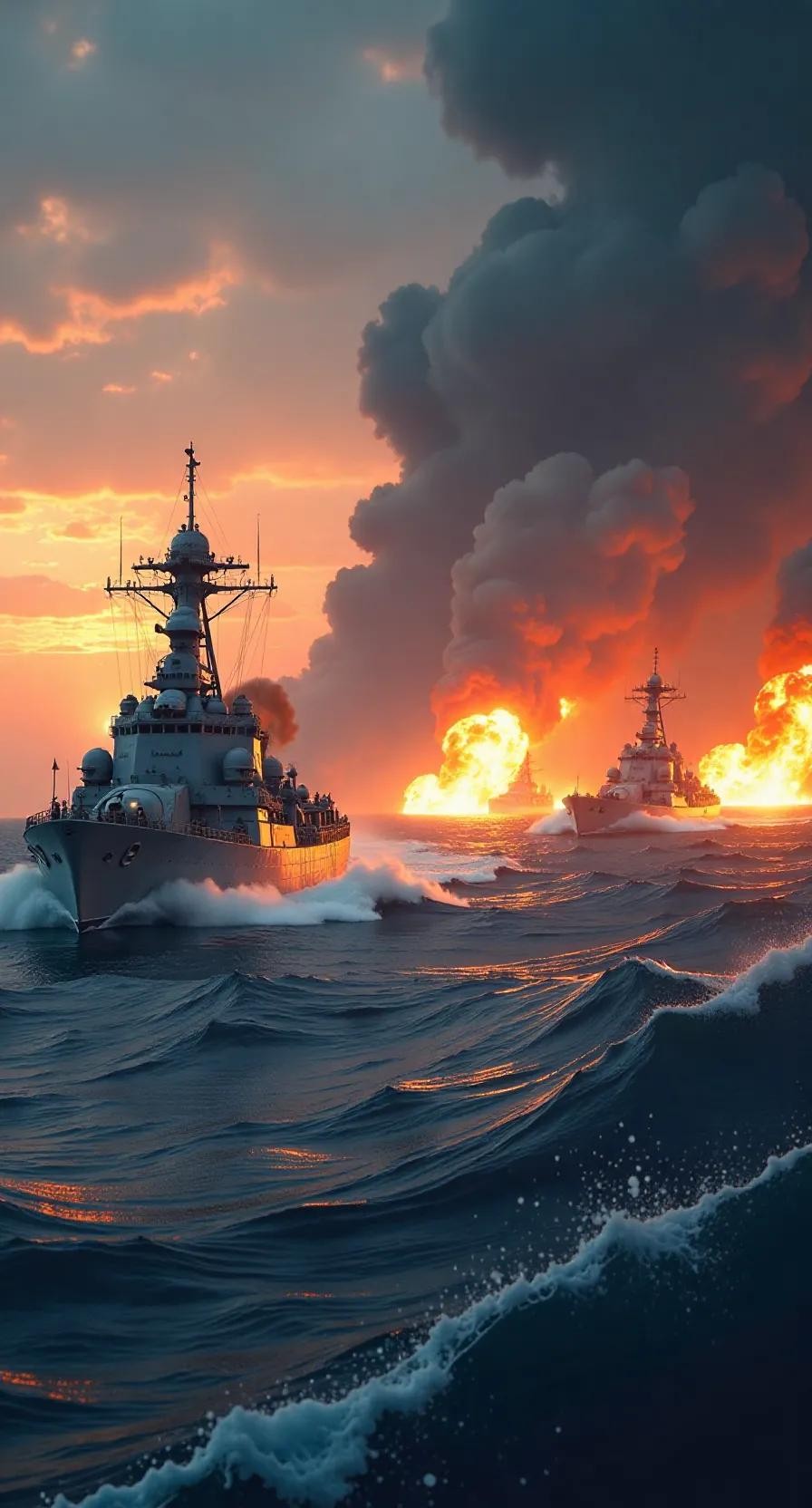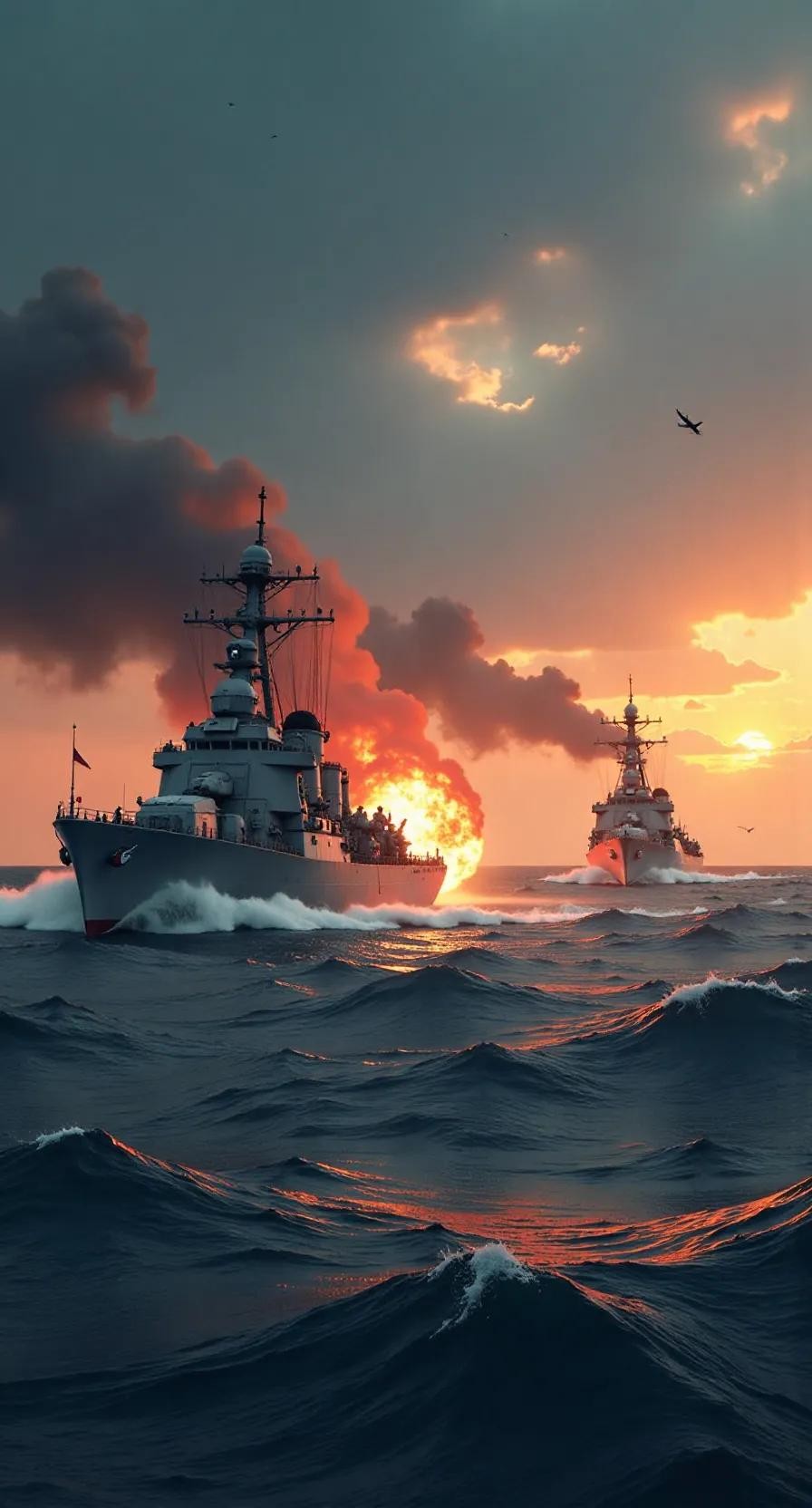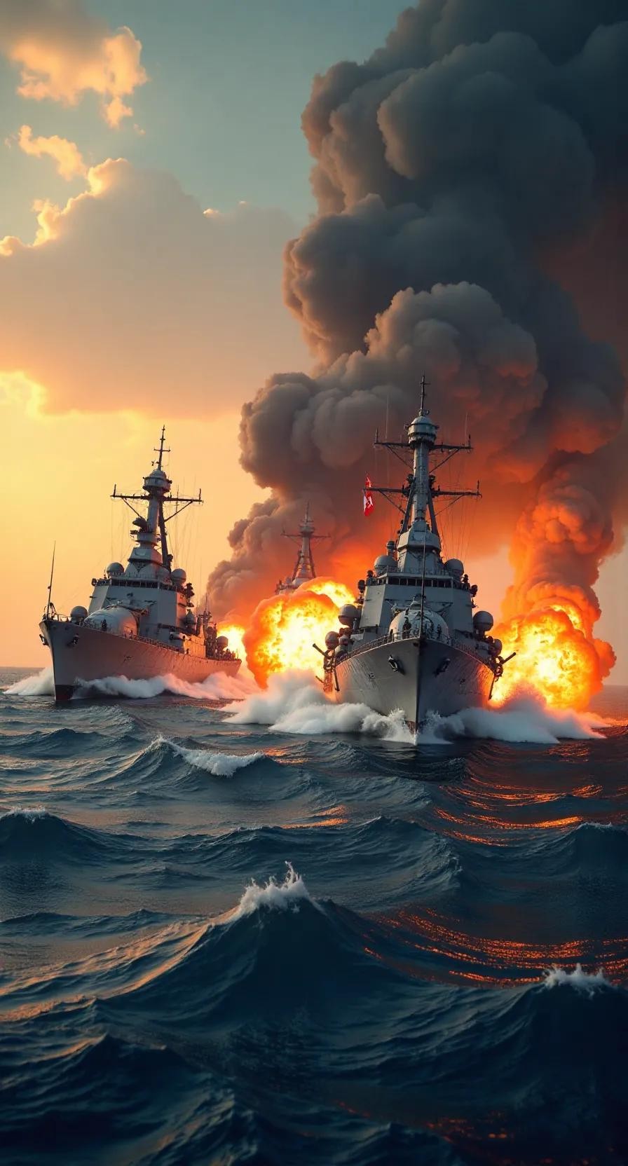 战斗的激烈程度远超预期,双方舰队在海面上展开了近距离的交火。日本舰队利用其舰艇的机动性和火力优势,逐渐掌握了战斗的主动权。清舰虽然奋力抵抗,但面对技术与战术的双重劣势,局势愈发严峻。