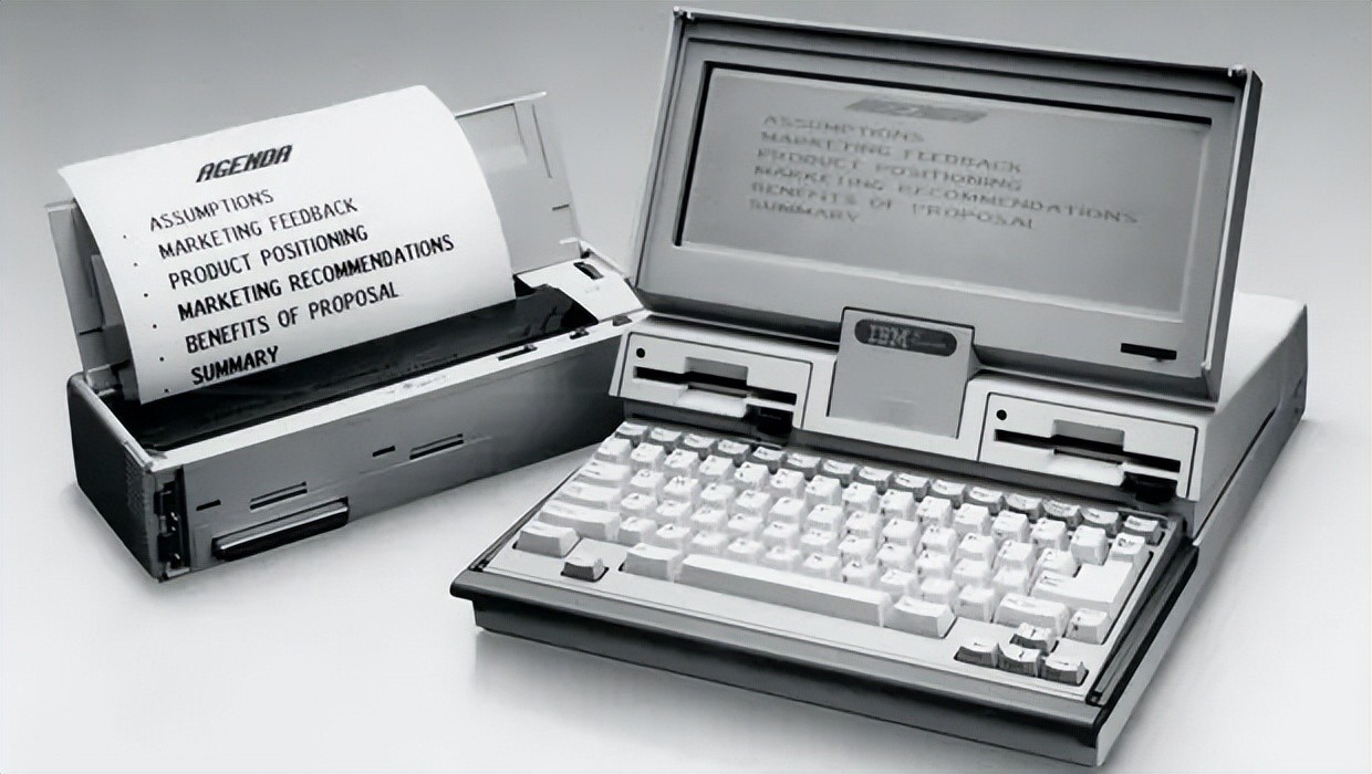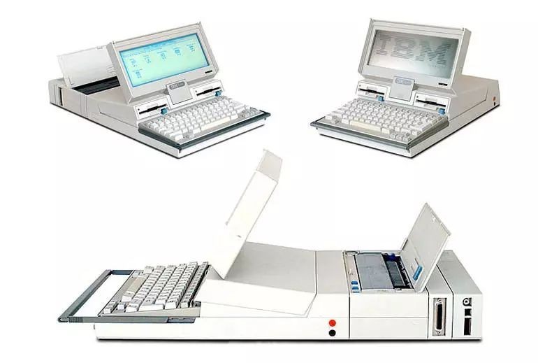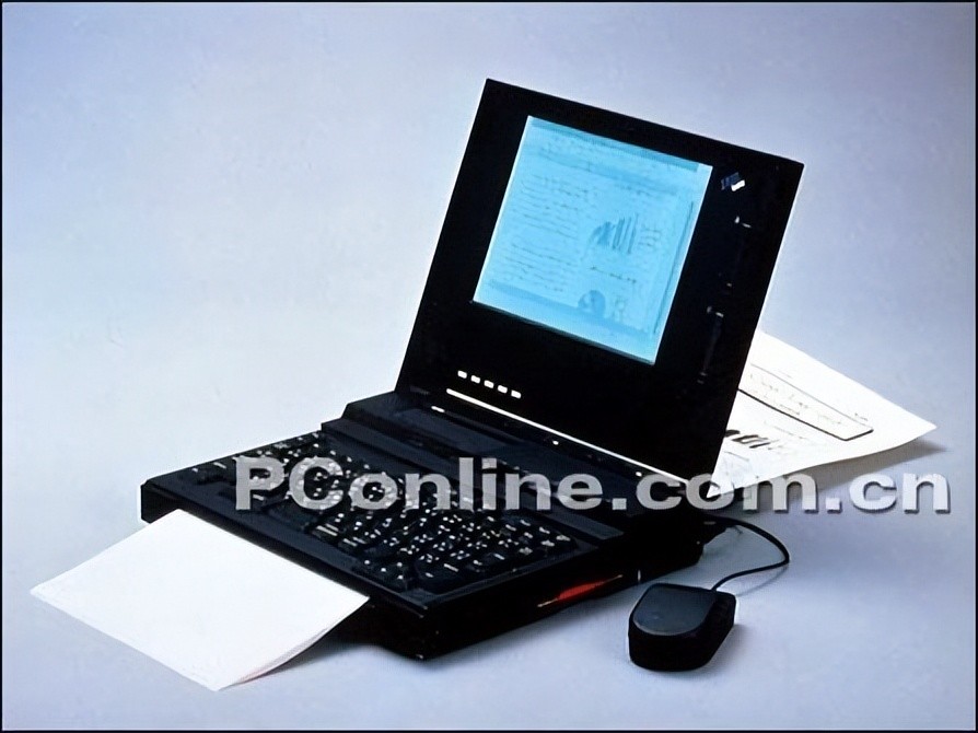 1986年4月:IBM推出第一款折叠电脑PC Convertible 5140。640×200像素的LCD显示屏可拆卸,更换外置的显示屏。背面可组装热敏打印机。配备256KB RAM和3.5英寸软盘驱动器。内置了电池,世界第一台完全通过内置电池工作的计算机,内置电池的使用确立了-电池成为笔记本不可替代的标准配置。5.5kg重,售价1995美元,销量却很惨淡。