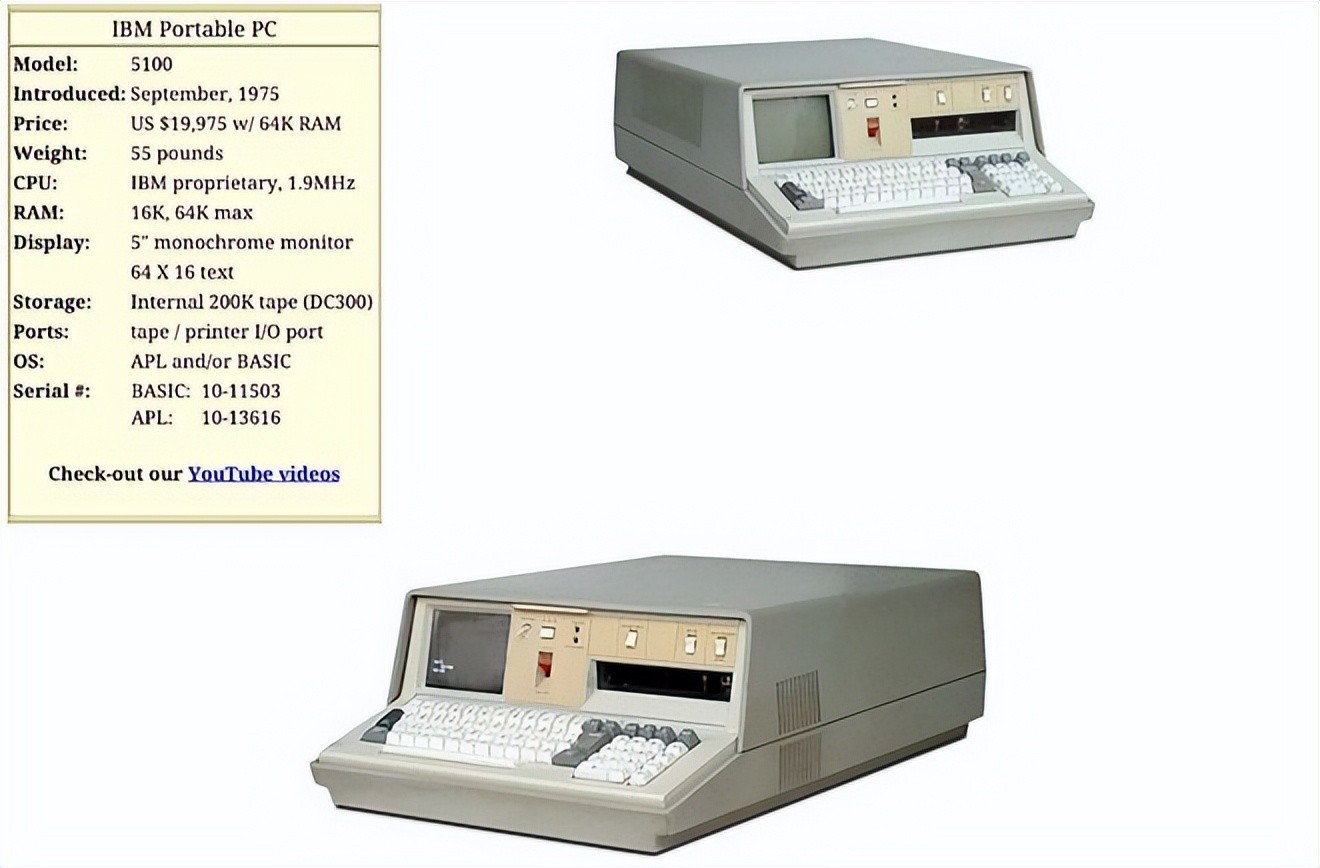 1975年9月:IBM推出世界第一台便携式电脑IBM 5100,重24KG,售价8975美元,共销售5万台。