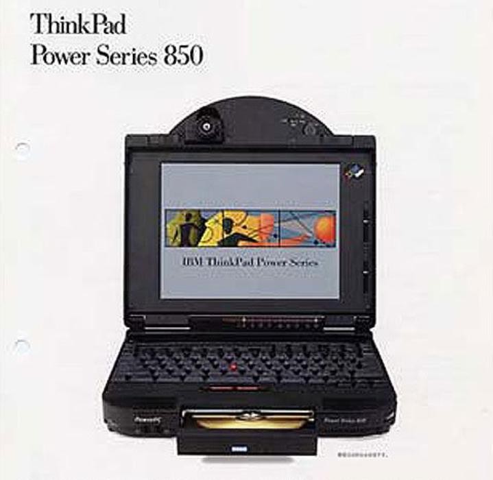 1995年6月:IBM推出全球第一款内建摄像头的笔记本电脑ThinkPad Power Series 850,“大眼睛”摄像头以MPEG和AVI格式收录电视信号,PowerPC处理器,属于天价级别的工作站机器,售价12000美金,ThinkPad的贵族+异类。