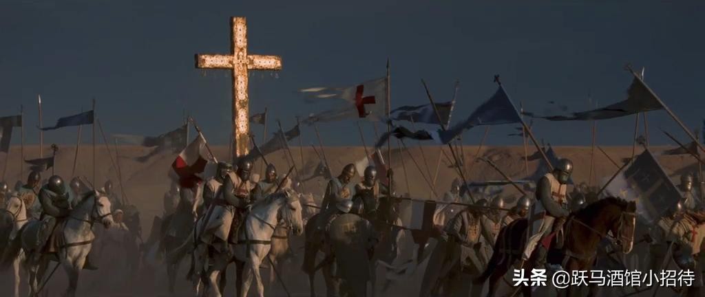 此外还有一个重要细节:当初鲍德温四世出征时身边带着的巨大金色十字架即为当年耶稣殉难的“真十字架”(用碎片拼接而成),象征着神权和世俗权力在耶路撒冷的高度统一。盖伊出征时已经加冕为耶路撒冷王,因此他也有权携带“真十字架”出征,这部分细节电影还原得相当到位。