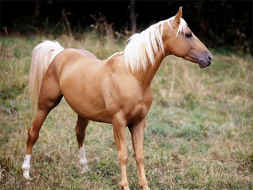 黄骠马的含义是“黄马带白点”。此马的白点多位于肚子和两肋处。最主要的是马头上有白毛,形状圆如满月。所以别名“西凉玉顶干草黄”。黄骠马即使喂饱了草料,肋条也显露在外。所以另有别名“透骨龙”。是难得一遇的宝马良驹。