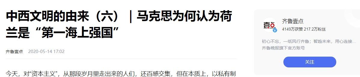 《中西文明的由来(六)|马克思为何认为荷兰是“第一海上强国”》——齐鲁壹点 2020年5月14日发布