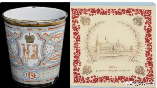 一听到新沙皇要发放礼品的消息,无数民众从四面八方疯狂涌来,数量之多,足有好几十万人。这些所谓的礼品其实也很简单,一个花布包,里面装着面包、香肠、糖果等小食品,再加上印有新沙皇首字母的纪念搪瓷杯“加冕杯”。