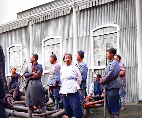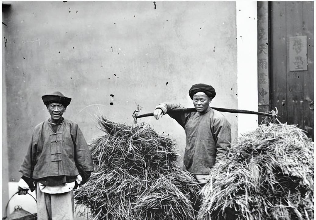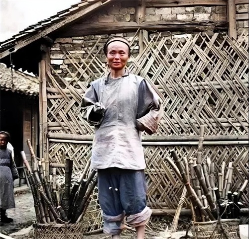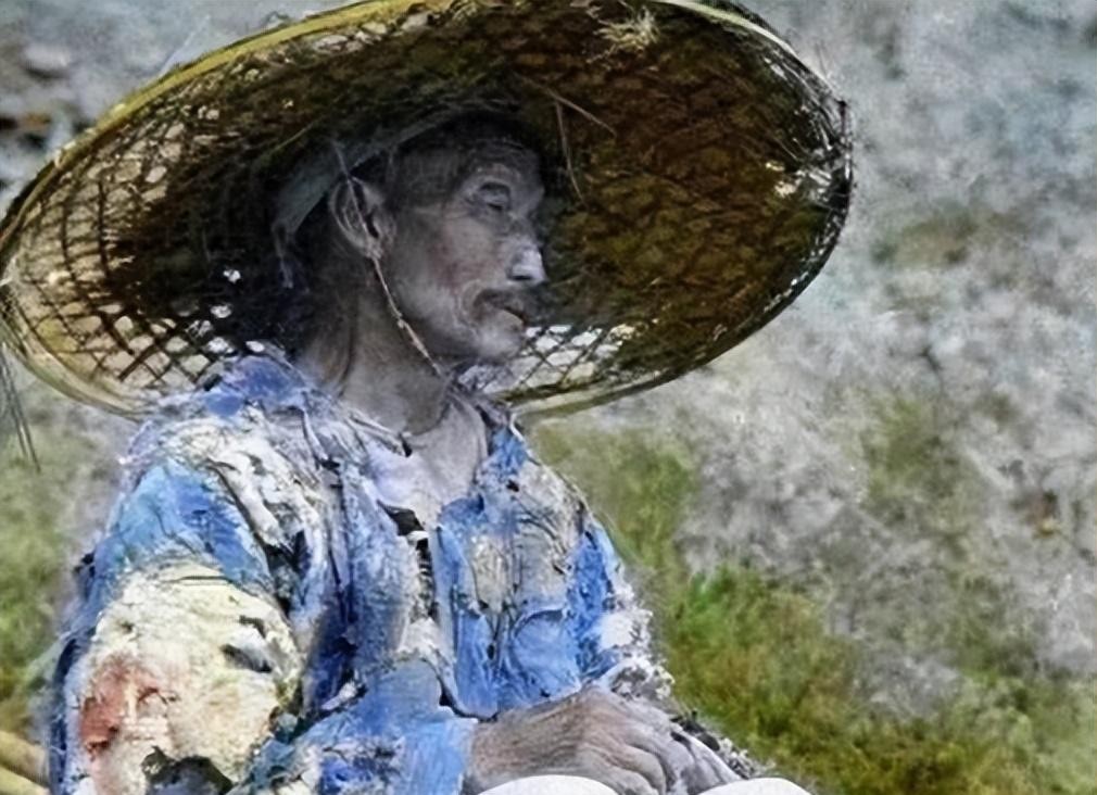 这一张是清朝时期罕见的由摄影师加以上彩色的照片,老伯的衣服补了又补了,戴着斗笠也是破破烂烂的,穷人看着很心酸,生活悲惨,衣服穿不暖。