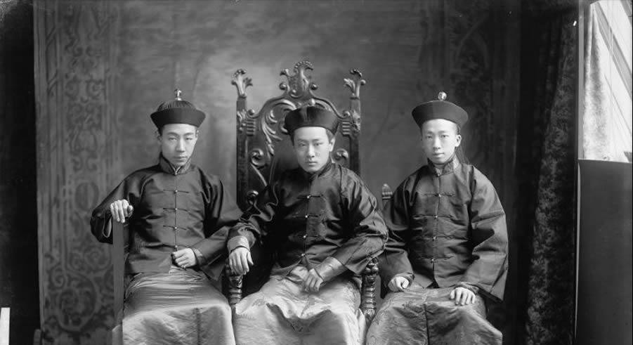 清末时期的男女服饰——瓜皮帽长袍马褂燕尾暖帽衫裙。