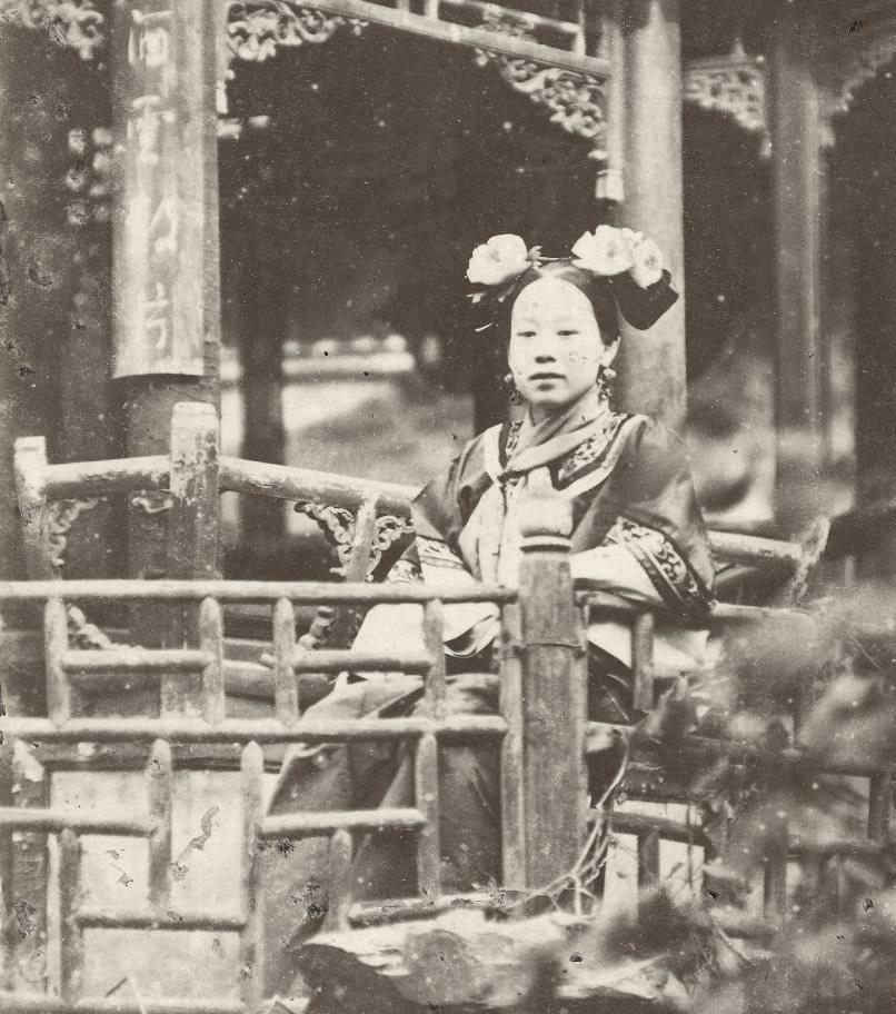 这位女子也是严先生的一位妻妾,与上一张照片在同一地点拍摄。严先生的两位妻妾都非常年轻漂亮,他很可能还有更多的妻妾没有出镜