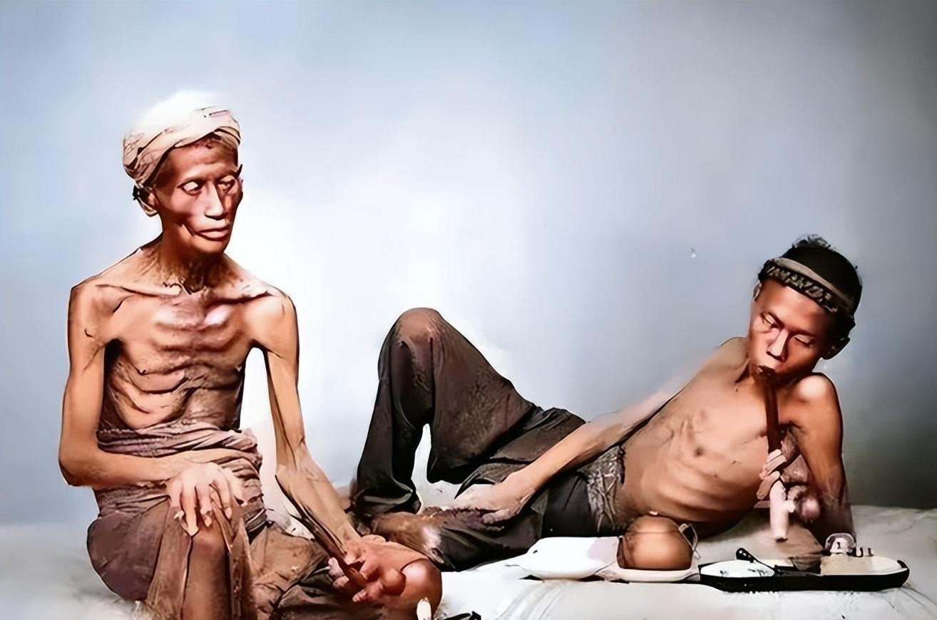 当年抽大烟的大清百姓。