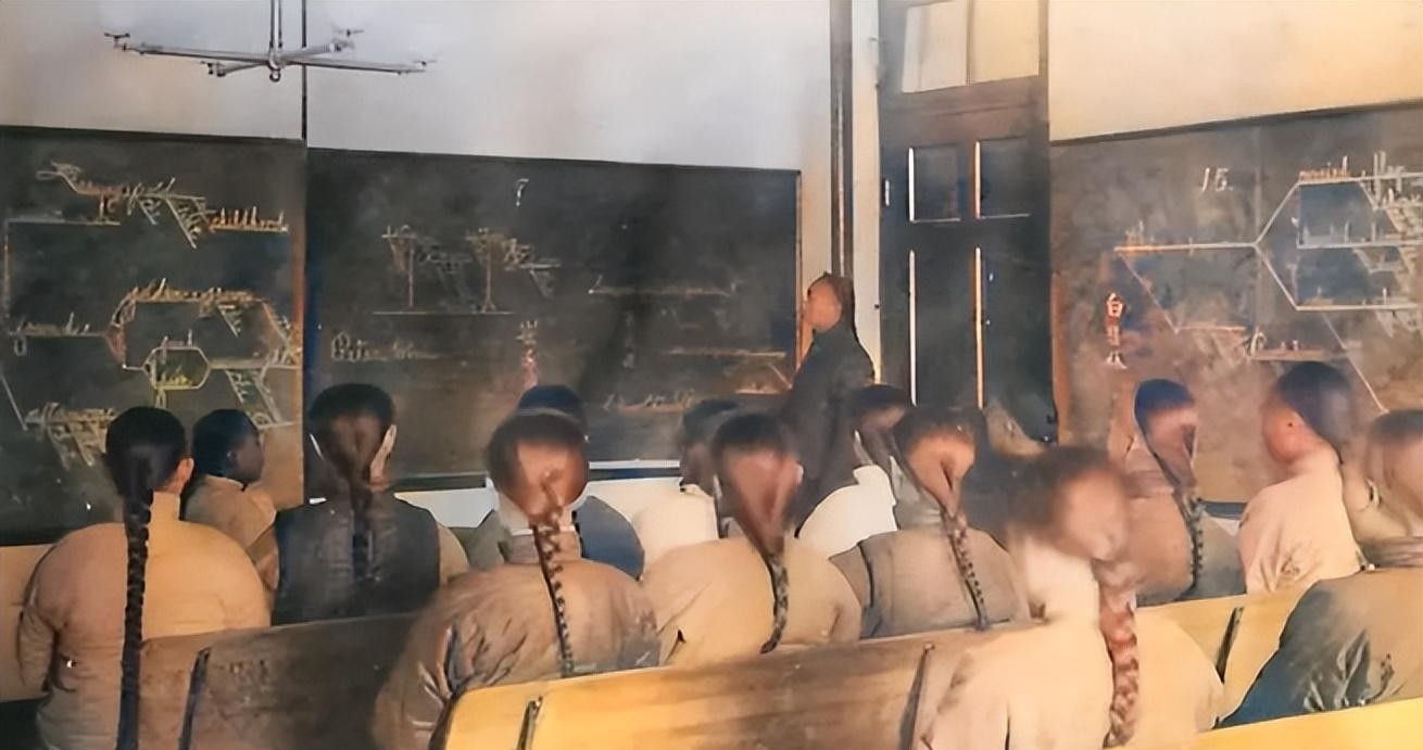 在新式学堂里正在学习的学生们