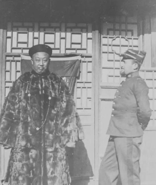 年,直隶某地官员与八国联军军官合影。右边的洋军官侧对镜头,一副趾高气扬的样子。