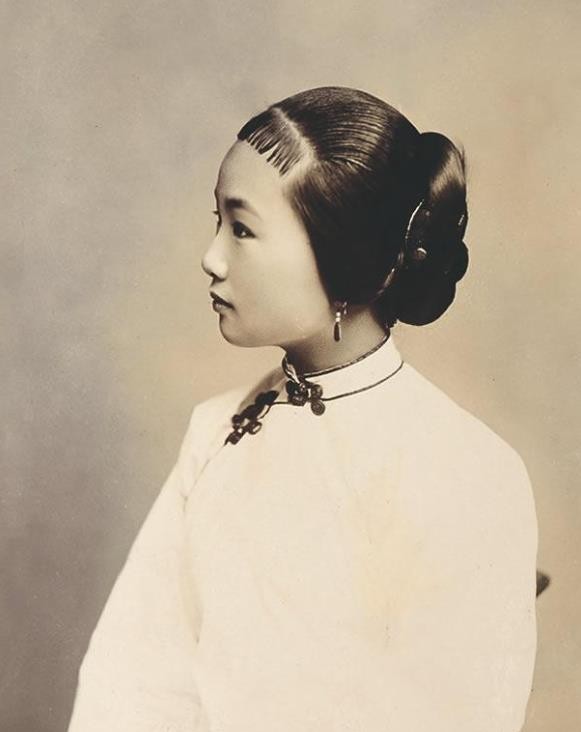 这位美女额前留短款刘海,脑后挽髻,头发一丝不乱,侧对镜头,美丽动人,每一个细节都无可挑剔。她的装扮比前文那位青楼女子更加时尚更加清爽。