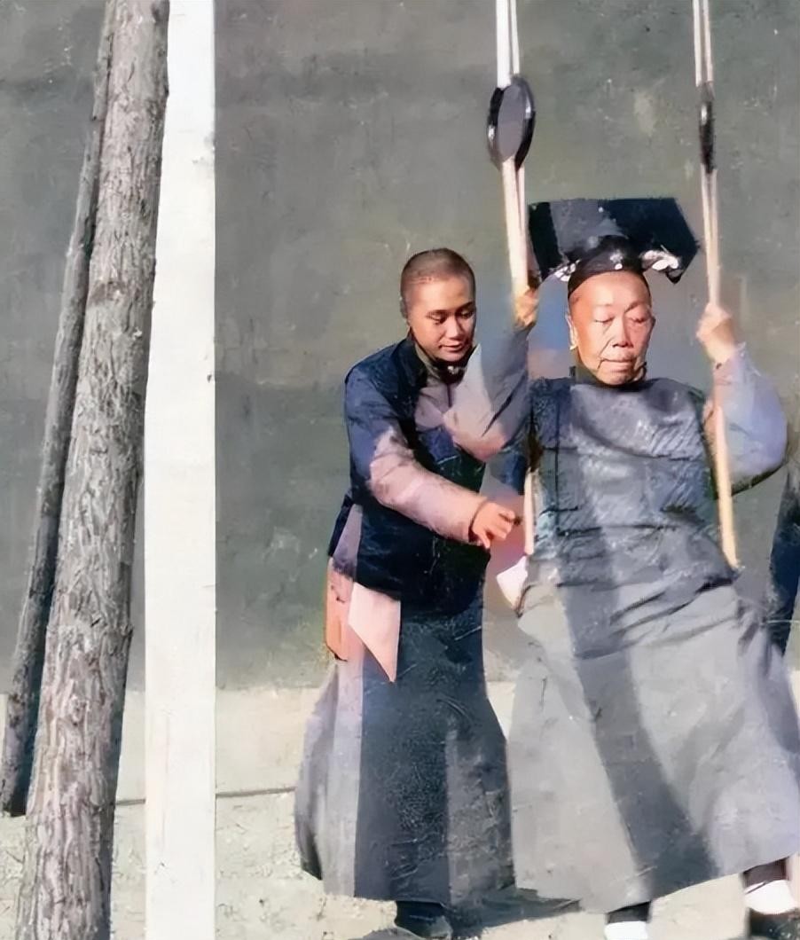 一个小太监正在服侍一名妃嫔荡秋千,这才像历史,那个时代哪有那么多五颜六色的服饰啊。同治后妃还说的过去