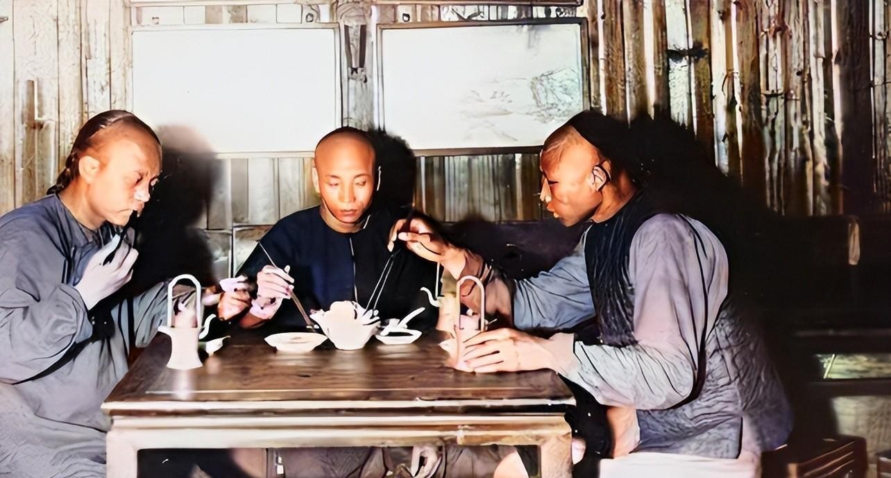 三个大男人坐在饭店里吃饭,他们并没有点很多菜。