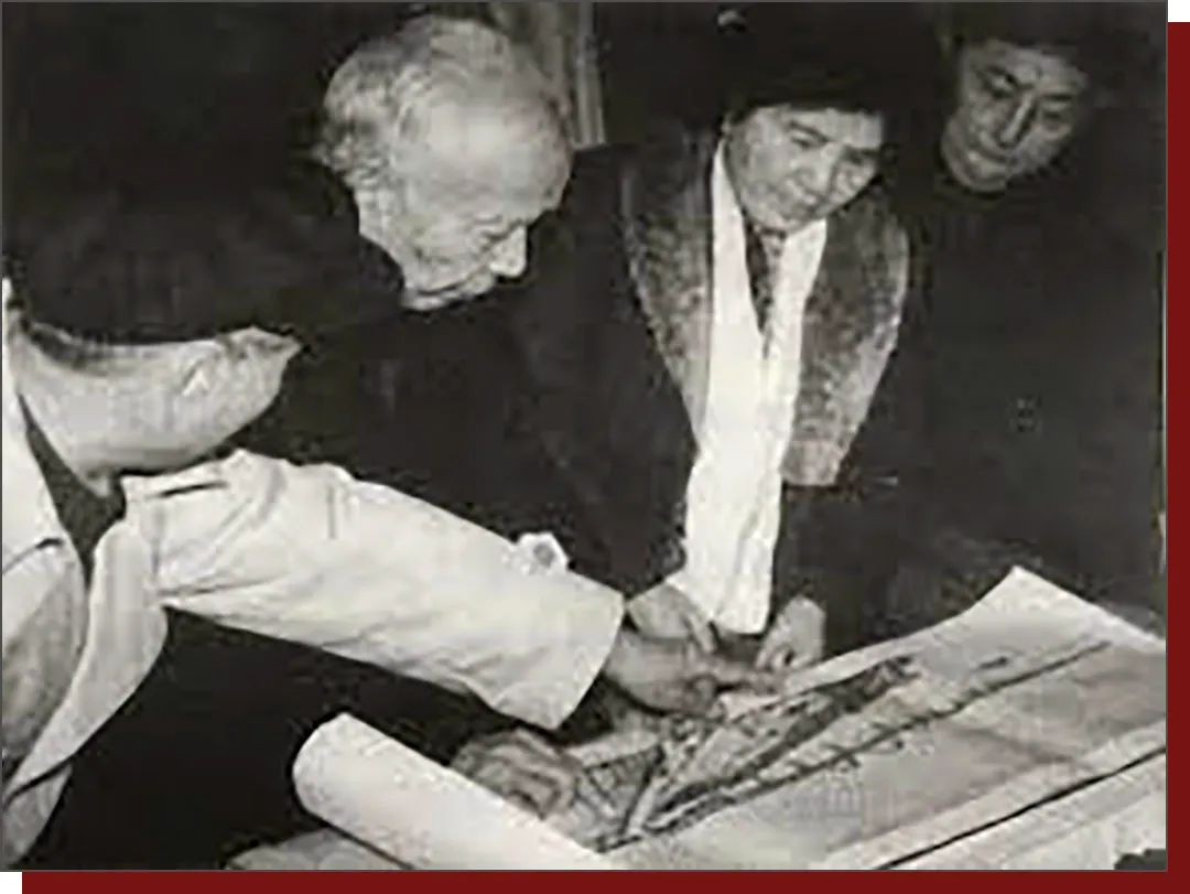万绍芬(右二)向万里(右三)汇报长江大桥建设情况 图源:祖国网