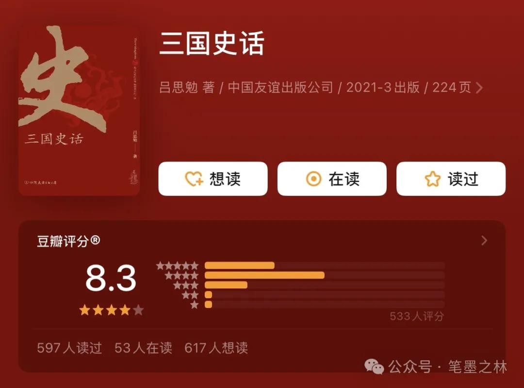 本书是史学大家吕思勉先生创作的惟一一部通俗性史学著作。吕先生以巨擘手笔,写通俗文章,在书中,先生区分了真实的三国与“演义”中的三国人物、事件、战争及地理环境:赤壁之战的真相、司马氏的兴亡、董卓如何扰乱朝纲、曹操势力怎样兴起等,吕先生都提出了个人见解。深厚的历史学根基与平实易懂的语句相结合,使行文生动有趣,读者读来并无艰涩之感,时有会心领悟。因此,本书也成为易中天品三国的重要参考资料之一。