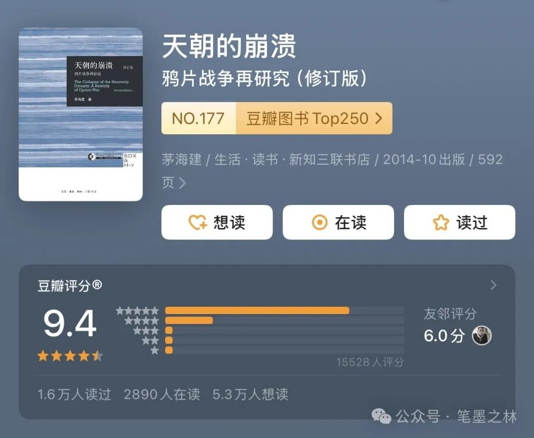 《天朝的崩溃》出版十余年,流传较广,影响颇大,学术价值历经时间考验,已广为读者肯定推崇,即在海外,都成为治近代史之学者、学生,以及一般人士广泛阅读的著作,视之为中国近代史研究中最具代表性的著作。