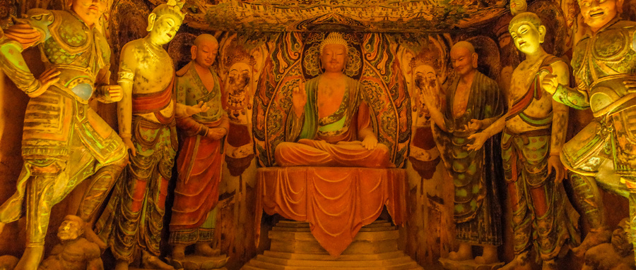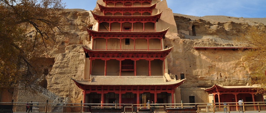 它始建于十六国的前秦时期,历经十六国、北朝、隋、唐、五代、西夏、元等历代的兴建,形成巨大的规模,有洞窟735个,壁画4.5万平方米、泥质彩塑2415尊,是世界上现存规模最大、内容最丰富的佛教艺术地。