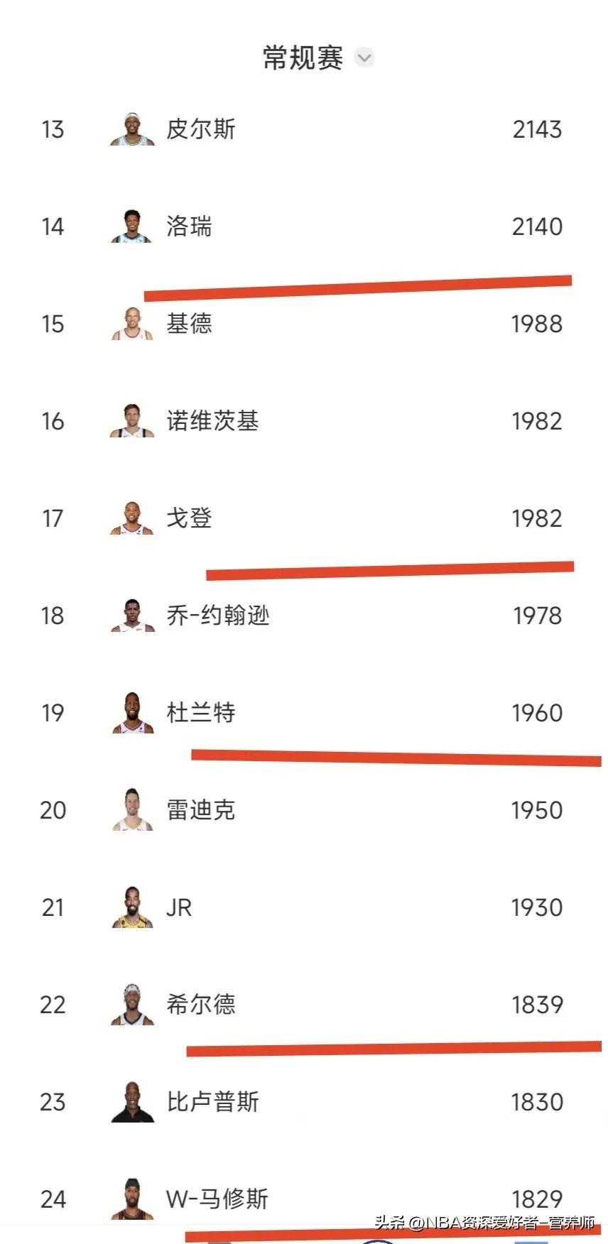 历史前十当中竟然有5位现役球员