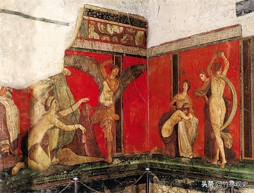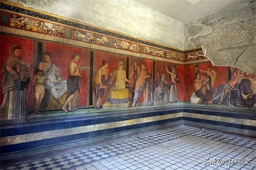 在庞贝古城的遗址中,考古专家们意外地发现了一幅神秘的壁画,经过鉴定发现,该壁画名为《狄俄尼索斯秘仪图》,它是一种被用于祭祀的壁画。