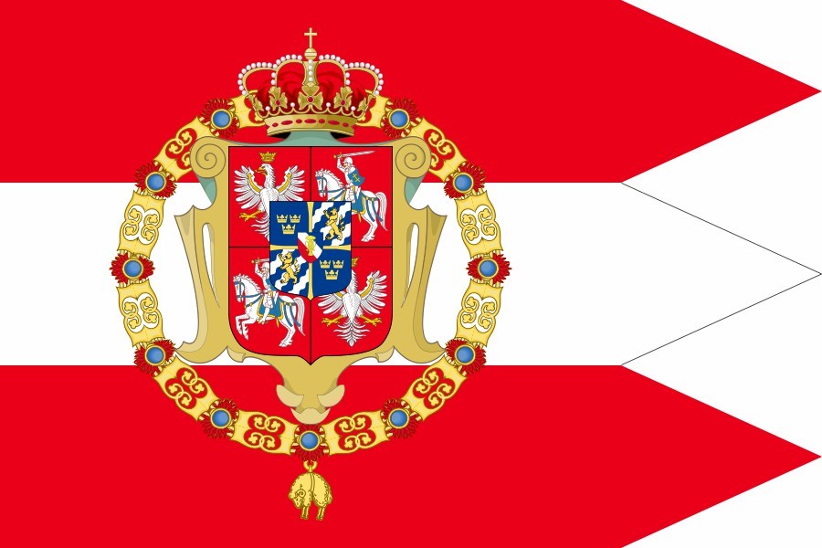 波兰会议王国(俄属波兰,1815-1919),上图为王室旗帜,下图为海军旗。