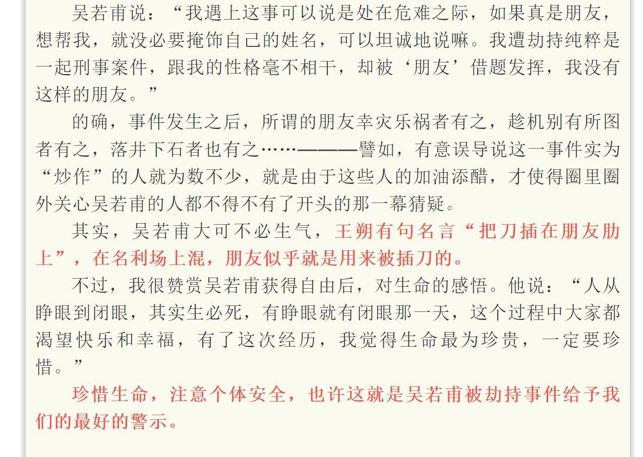 此外,吴若甫事件也给我们带来了关于朋友的警醒。
