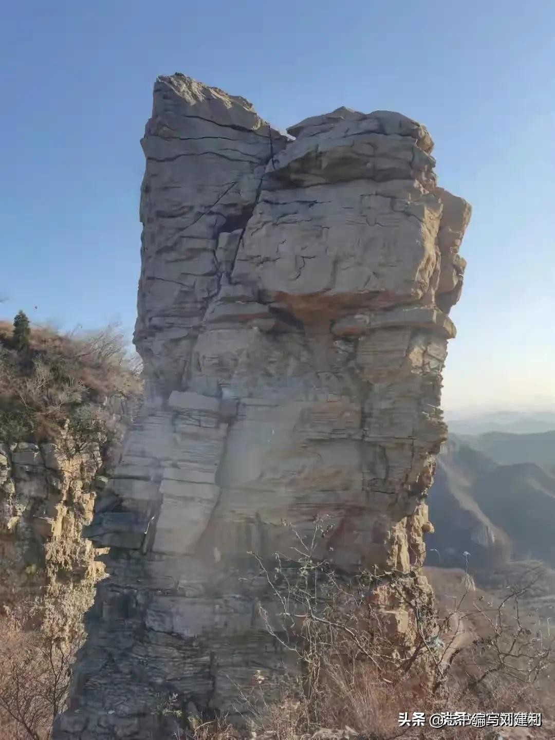 站在挂云山峰顶,天清气朗之时,视野可达百里之外,四周美景尽收眼底。极目东望,是繁华美丽的省会石家庄市和一望无际的华北大平原;西顾为莽莽苍苍似万马奔腾、延绵不断的太行山群峰;向北纵目,是风光旖旎(yǐ nǐ)的中山湖(黄壁庄水库)美景;南朓则是有“天下奇寨”之称的抱犊寨上蜿蜒起伏的长城和宏伟壮观的道观宫殿。早可观日出,午可看云海,晚可观晚霞。