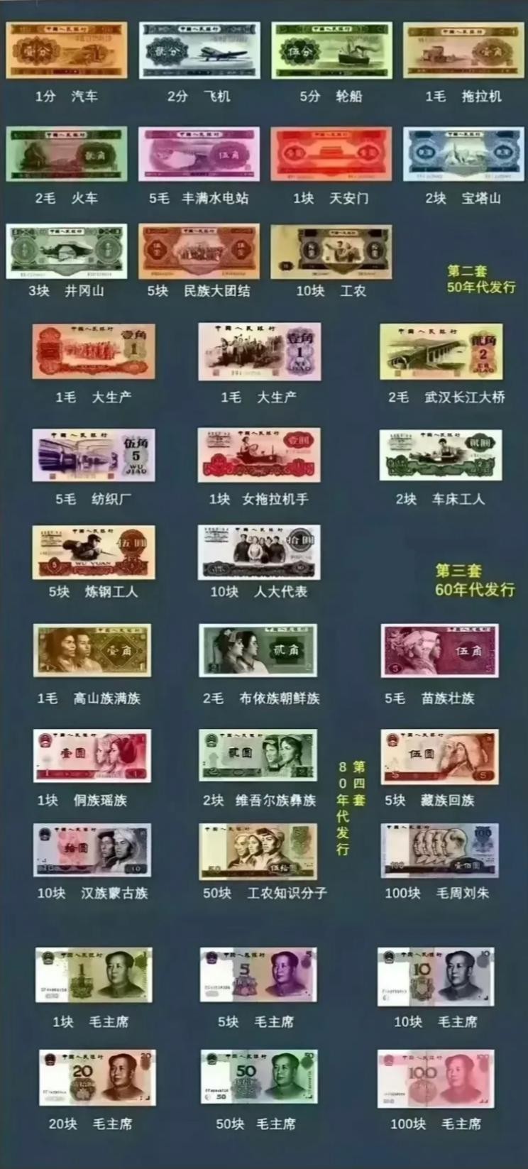 所经历的人民币变迁,是中国经济发展和科技进步的缩影。我觉得能看到这篇文章的,一般都是用过3套纸币以上的吧?分别有第五套,第四套,第三套,对不对?哈哈~~~