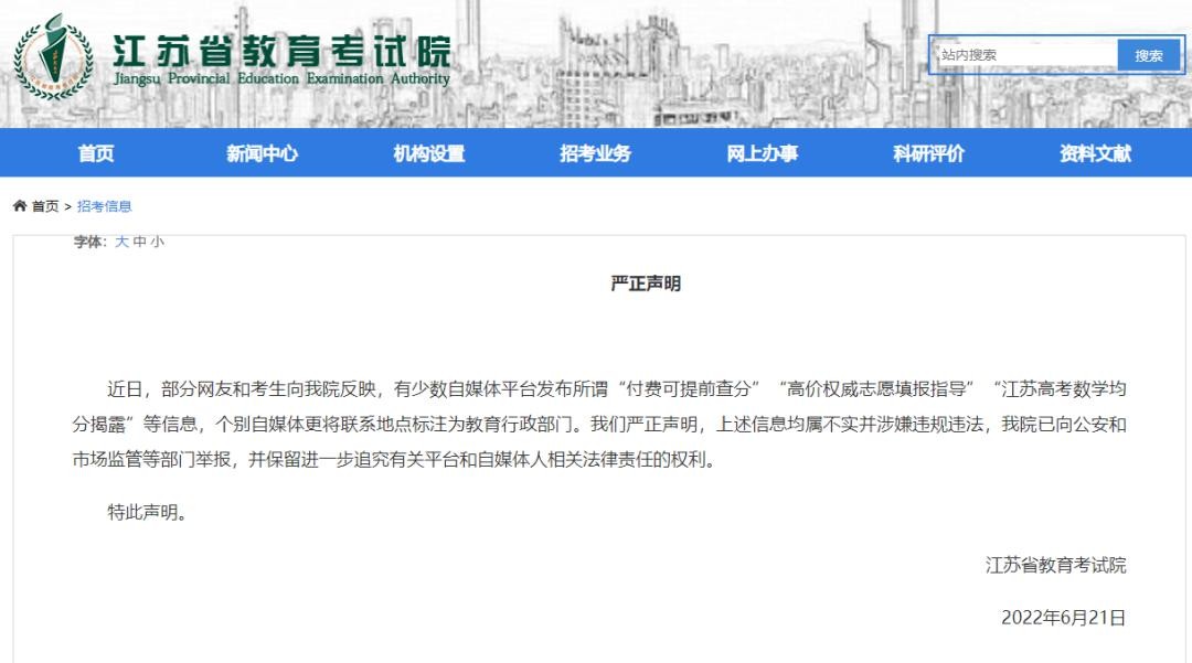 姹熻嫃鐪佹暀鑲茶€冭瘯闄?鏈?1鏃ュ彂琛ㄥ0鏄庣О锛岃繎鏃ワ紝閮ㄥ垎缃戝弸鍜岃€冪敓鍚戣闄㈠弽鏄狅紝鏈夊皯鏁拌嚜濯掍綋骞冲彴鍙戝竷鎵€璋撯€滀粯璐瑰彲鎻愬墠鏌ュ垎鈥濃€滈珮浠锋潈濞佸織鎰垮~鎶ユ寚瀵尖€濃€滄睙鑻忛珮鑰冩暟瀛﹀潎鍒嗘彮闇测€濈瓑淇℃伅锛屼釜鍒嚜濯掍綋鏇村皢鑱旂郴鍦扮偣鏍囨敞涓烘暀鑲茶鏀块儴闂ㄣ€?/p>