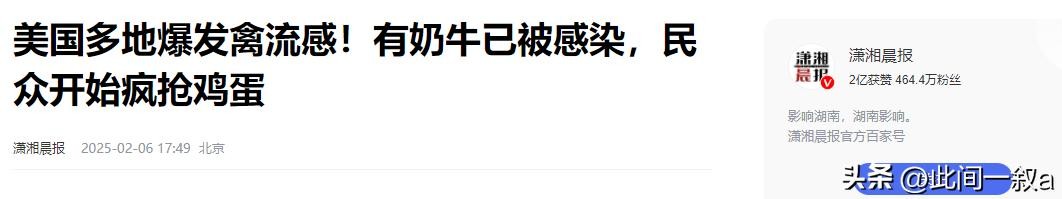 潇湘晨报:2025年2月6日《美国多地爆发禽流感!有奶牛已被感染,民众开始疯抢鸡蛋》