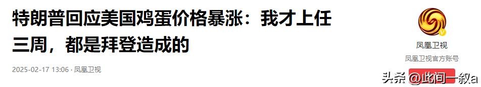 凤凰卫视:2025年2月17日《特朗普回应美国鸡蛋价格暴涨:我才上任三周,都是拜登造成的》