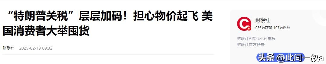 财联社:2025年2月19日《“特朗普关税”层层加码!担心物价起飞 美国消费者大举囤货》