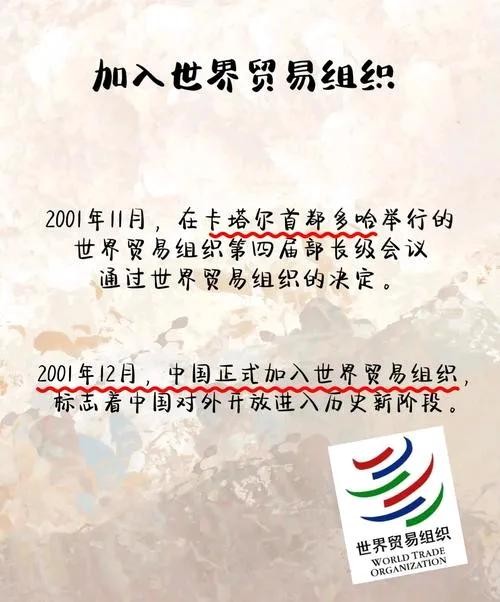 2001年12月11日,中国正式加入世界贸易组织(WTO),这一事件被视为中国经济发展历程中的重要里程碑。加入WTO不仅标志着中国全面融入全球经济体系,也为其经济改革和对外开放提供了新的动力。本文将从历史背景、加入过程、主要影响以及未来展望等方面,对中国加入WTO进行全面分析。