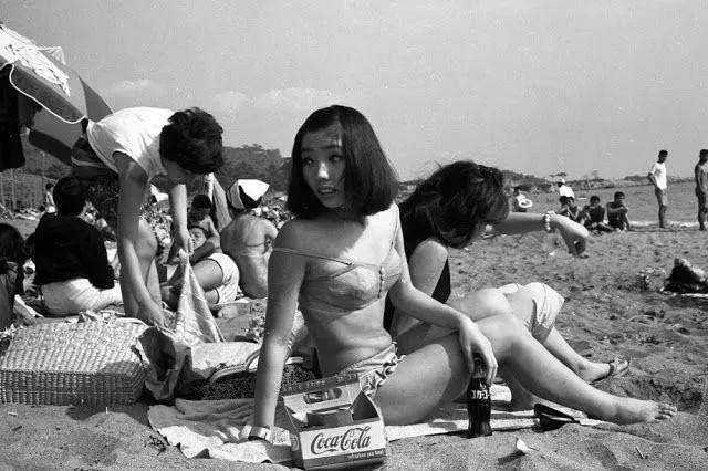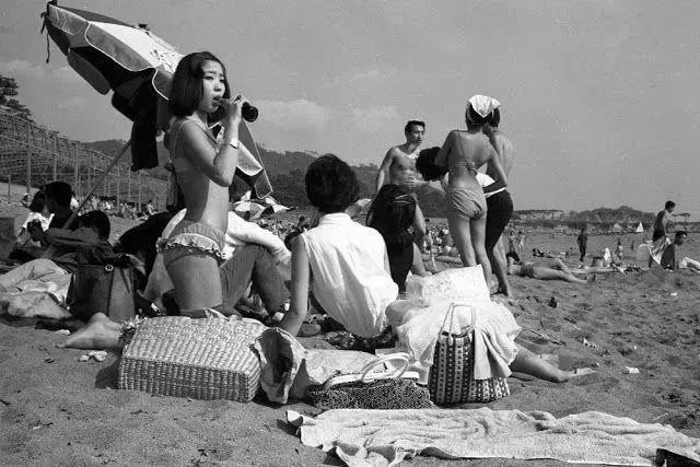 下图是1964年日本民众在沙滩休闲