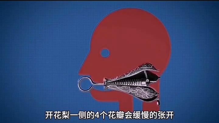 在执行该刑前,执法者会将女性捆绑起来,并将闭合状态下的开花梨刑具放置到行刑者的口中。随着执法者的一声令下,行刑者会开始转动开花梨上方的转钮。随着转钮的旋转,这个时候开花梨一侧的 4 个花瓣会缓慢的张开,女犯人的嘴巴将会承受常人难以忍受的痛苦。