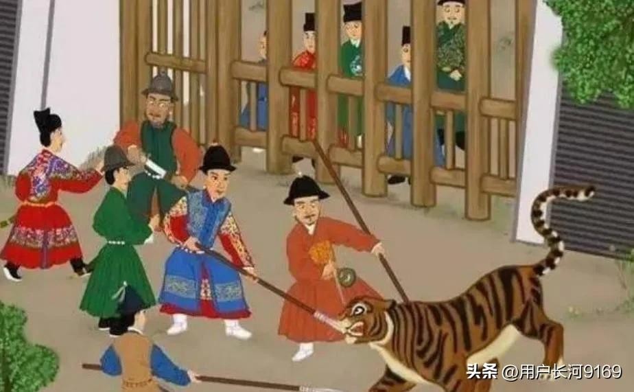 输给老虎之后,正德皇帝越想越不服气,决定与老虎再干一次。经过认真准备,他又到豹园与老虎干了起来。可惜这次仍然不敌老虎,还被老虎抓伤了。他这才意识到老虎的厉害,从此才打消了与老虎搏斗的念头。