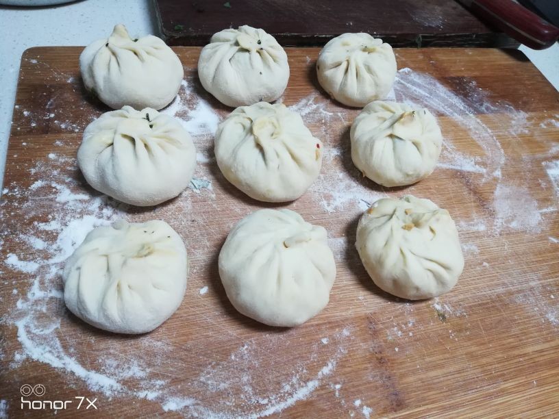 用备好的蔬菜馅子做成包子。二次发酵一刻钟。
