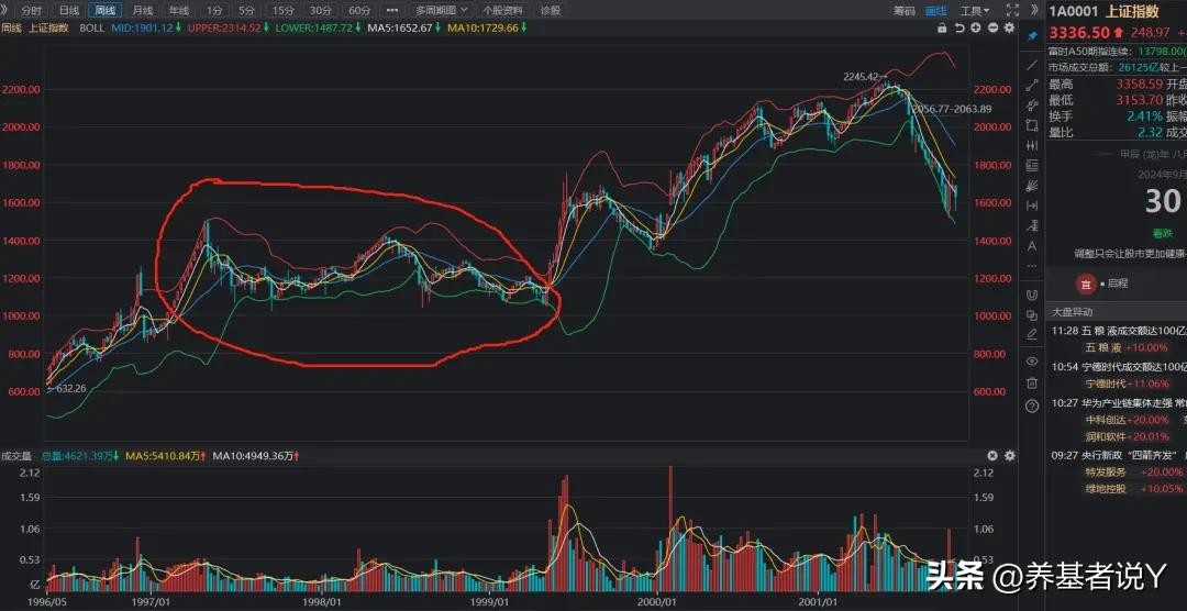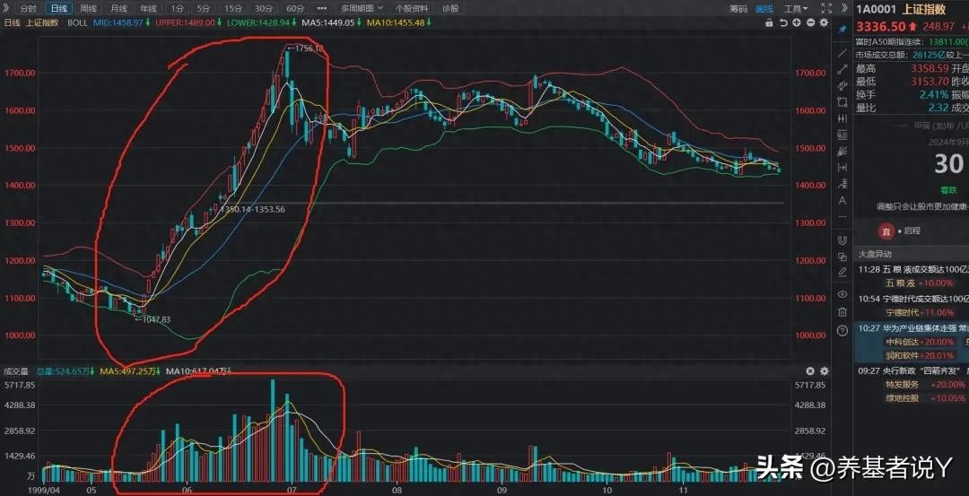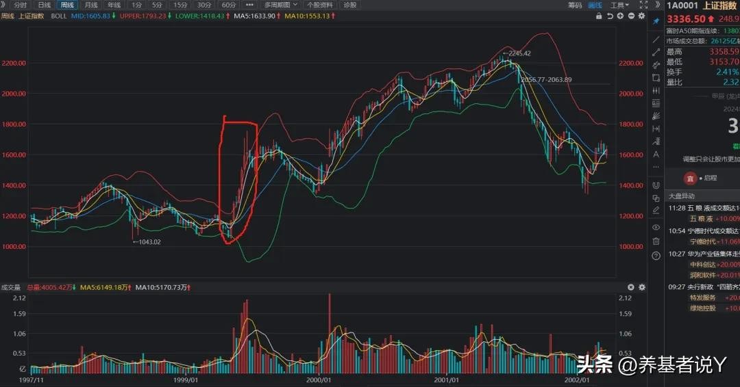 1999年的519行情和现在比较像。行情涨成一条直线。成交量快速放大。