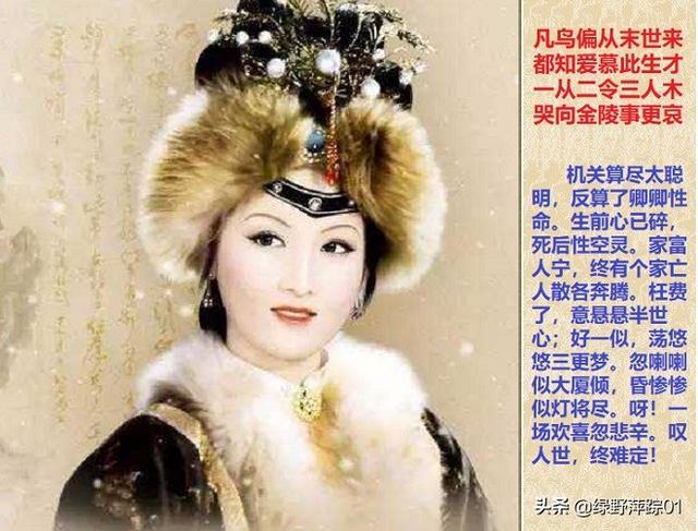 王熙凤的结局是“一从二令三人木”,这句判词绝不是说的凤姐婚姻三个阶段,而是隐伏了秦休、琹休(薛宝琴)、朱休、众休、春休、冷香休……等等朱明王朝的终局。而其《聪明误》中的“意悬悬”、“荡悠悠”,则又暗示凤姐也是被缢杀的。