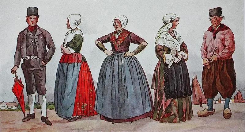 荷兰传统服饰的历史可以追溯到中世纪。在早期,荷兰的传统服饰主要以农民装束为主,因为荷兰是一个农业国家,大部分人口从事农业劳动。这些农民装束通常采用天然材料,如麻布和羊毛,并以深色为主,以适应荷兰的气候和劳动需求。传统服饰的特点是简朴、耐用和实用,反映了荷兰人民的朴实生活和勤劳精神。