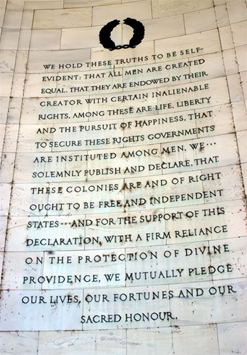 宣称“我们认为这些真理不言而喻:人人生而平等,造物主赋予他们若干不可剥夺的权利,其中包括生命权、自由权和追求幸福的权利。”
