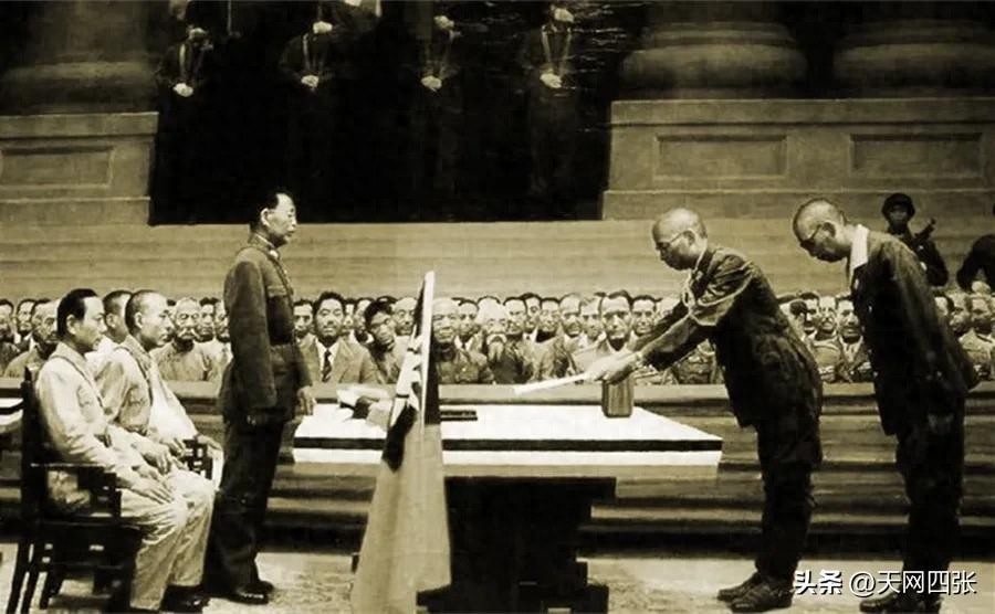 1945年9月9日上午,中国战区受降仪式在中国南京中央军校大礼堂举行。