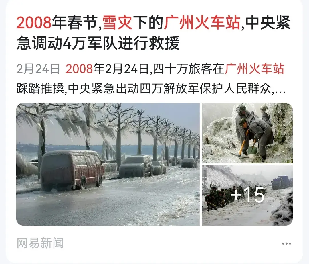而是想起了2008南方雪灾,那一场极其罕见的南方雪灾,导致了40万人滞留广州火车站11天,还有无数列车被困在半路。经历过或者有家人经历过的人,应该都记忆深刻。也是从那一年春运广州火车站的惨痛教训后,我国开启了基建狂魔模式。