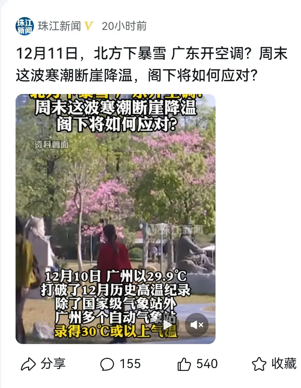 而这些年变暖的趋势越来越明显,广东的冬天越来越暖,这个冬天更是离谱,就我这个怕冷的人,也就在上月中那一波冷空气降温穿了两天外套,最近的天气温更是离谱,直逼30度,只要不是早出晚归,短袖短裤完全没问题。