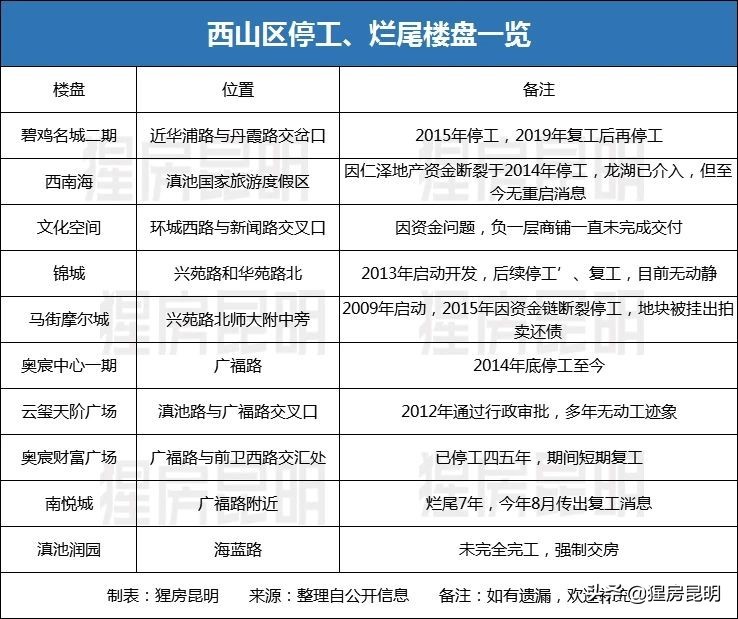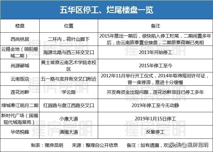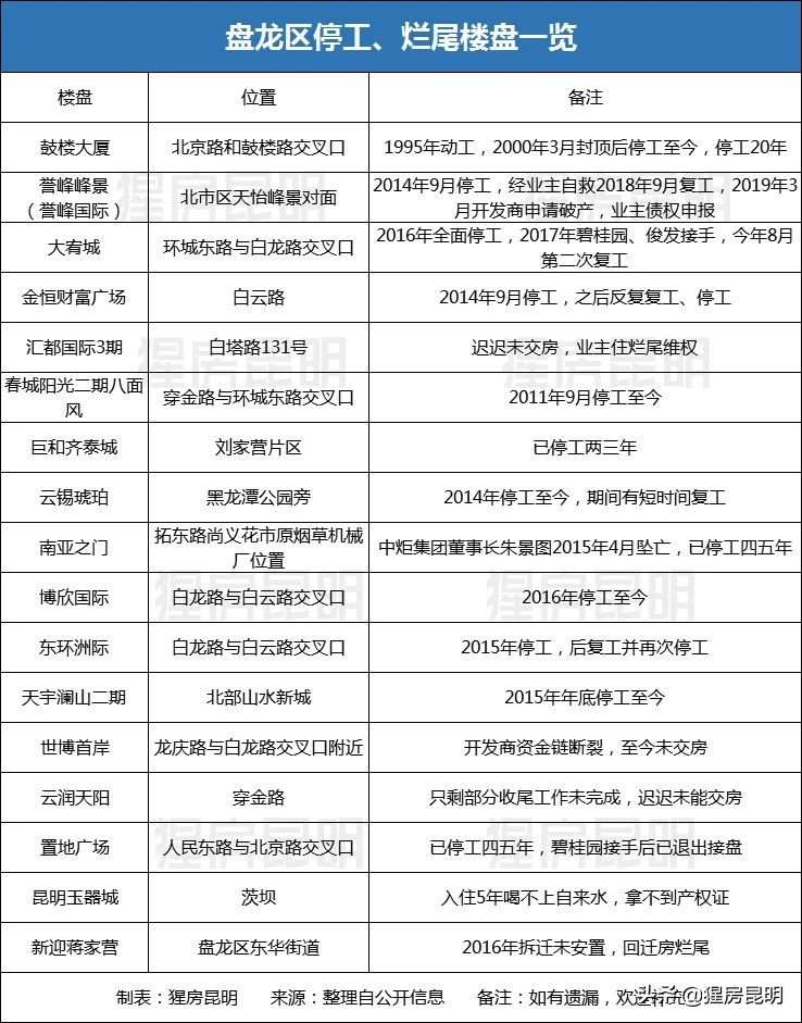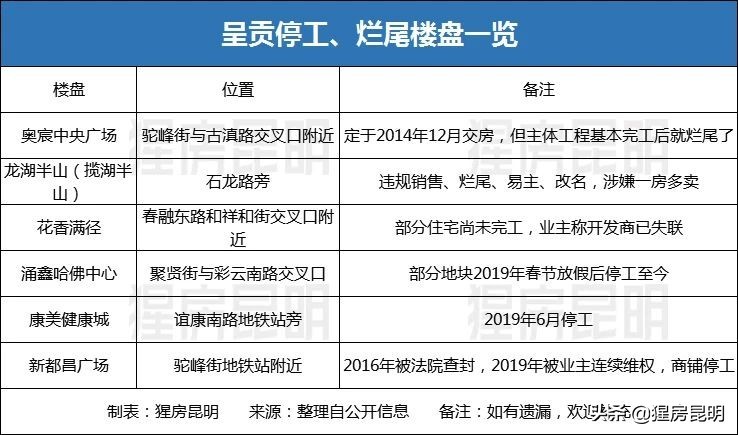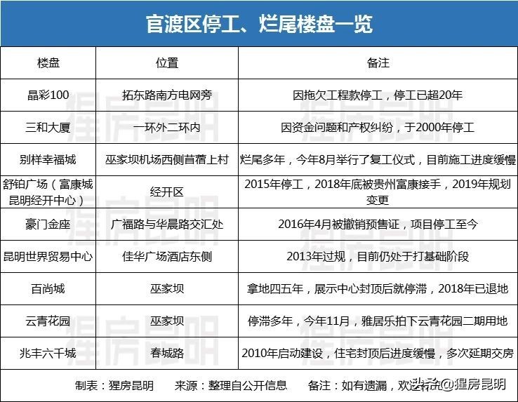梳理发现,昆明目前有50个停工、烂尾多年的项目(不完全统计)。