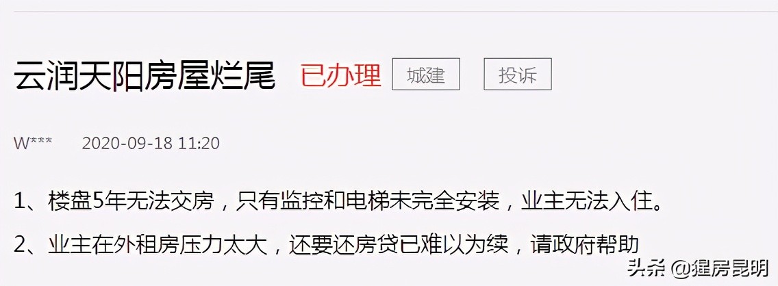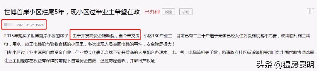 在人民网地方领导留言板,世博首岸、云润天阳等项目业主反映,小区烂尾无法正常入住。
