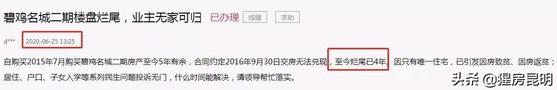 碧鸡名城为土堆村城改项目,2015年,碧鸡名城二期封顶后便陷入停工。