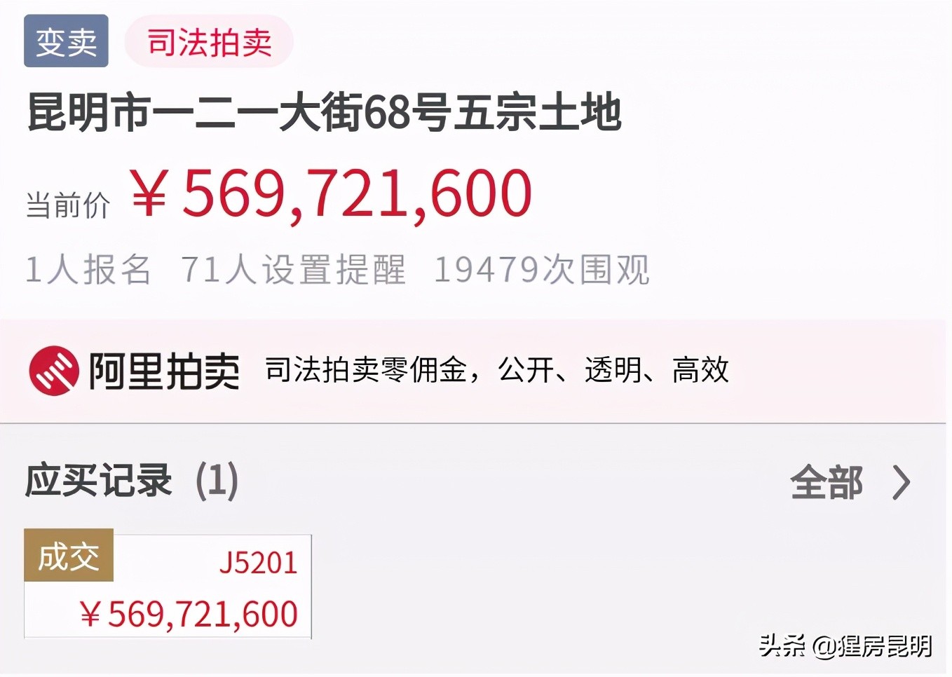 11月29日,莲花池国际商贸城后续用地,在阿里法拍网以5.697亿成交,竞得人为云南莲楹房地产。
