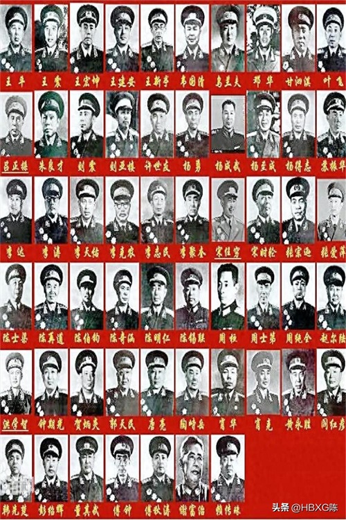 (1955年9月、中华人民共和国首次为1048名开国将领授予军衔。其中:元帅10名、大将10名、上将55名、中将175名、少将798名。)