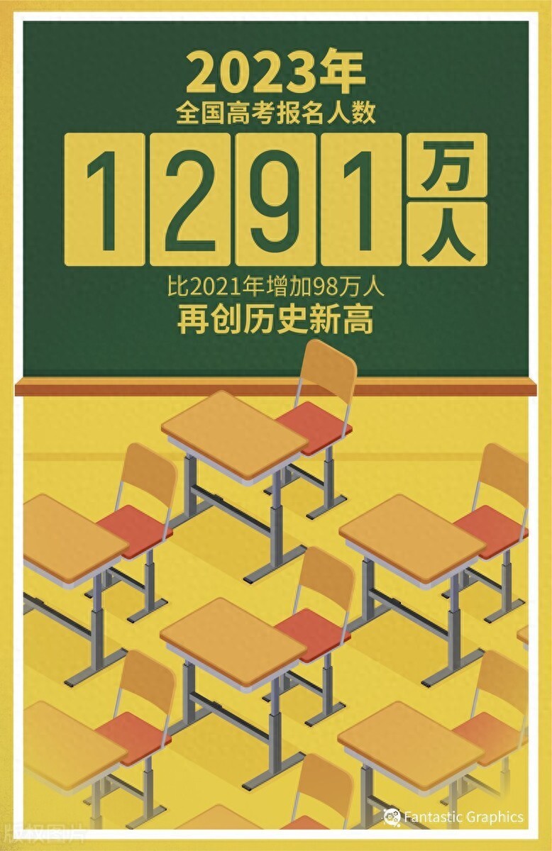 2023年普通高校招生全国统一考试将于6月7日和8日举行,全国高考报名人数再创历史新高!今年高考报名人数达到1291万人,相比2022年高考增长98万人!