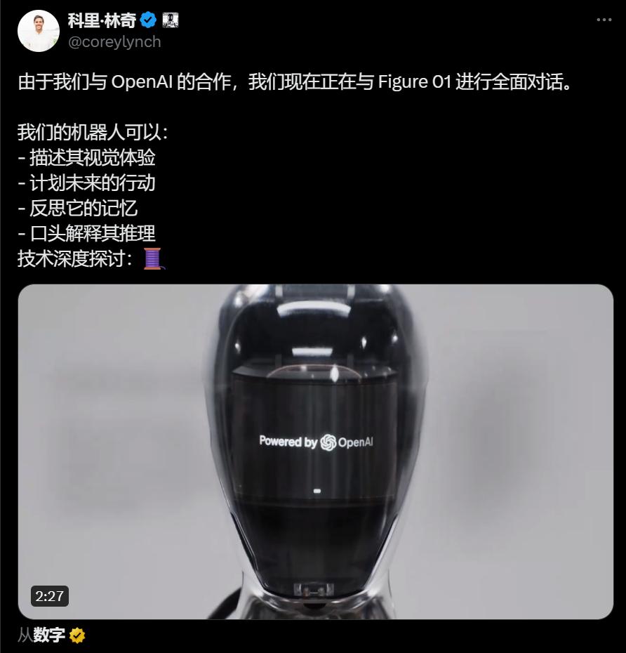 直到今天,和 OpenAI 合作搞出了 Figure 01 一鸣惊人。